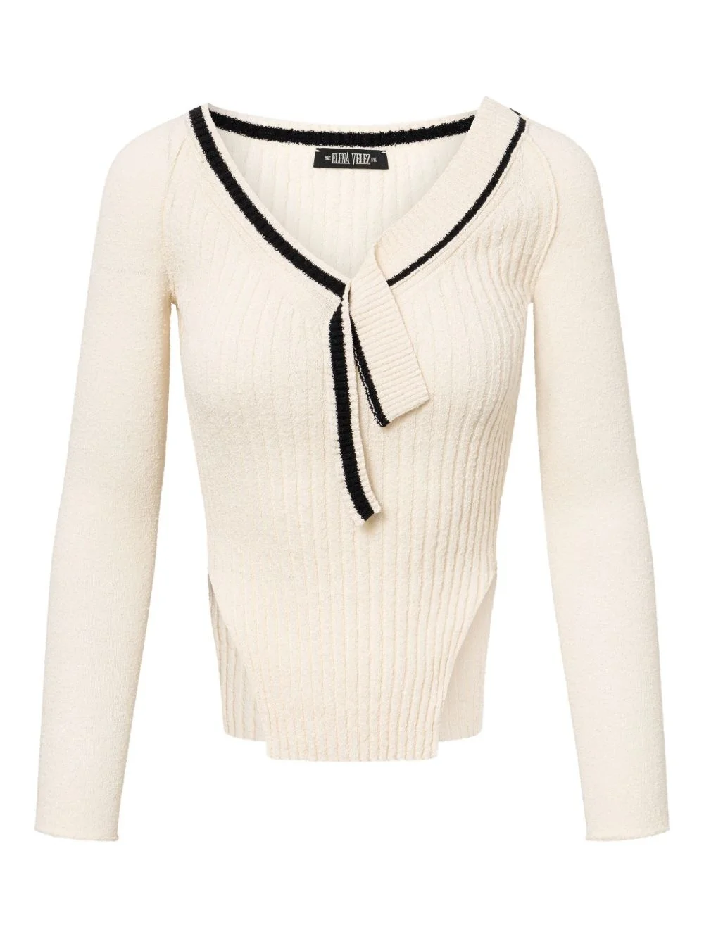 Varsity knitted top Highlights - Ivory white - Front tie fastening - Long sleeves Made in United States Composition Linen/Flax 100%