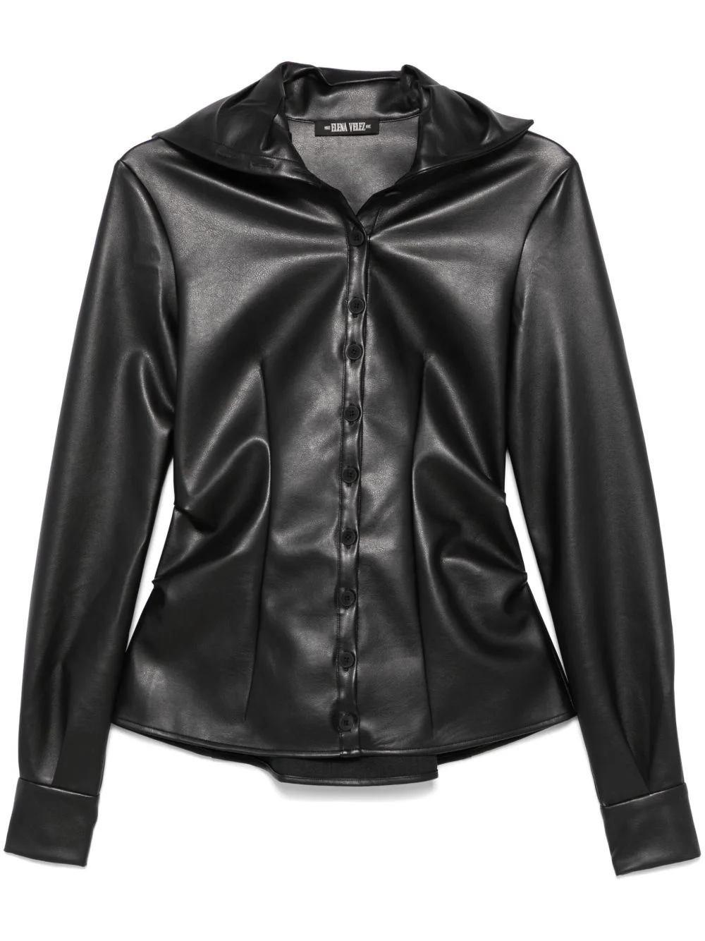 faux-leather shirt Highlights - Black - Faux leather - Front button fastening - Cutaway collar - Long sleeves - Buttoned cuffs - Ruched detailing - Curved hem Made in United States Composition Polyurethane 100% SIZE & FIT Model measurements Height 5 ft 9 in(1.75 m) Bust/Chest 31.88 in(81 cm) Hips 34.64 in(88 cm) Waist 24.01 in(61 cm) FittingInformation Designed for a close fit throughout The dart stitching adds structure and a closer fit in the torso of this piece Made from a midweight non-stretch fabric