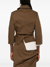 double-breasted jacket Highlights - Olive green - Concealed front zip fastening - Gathered detailing - Fitted waistline - Long sleeves Made in United States Composition Cotton 97%, Spandex/Elastane 3% SIZE & FIT Model measurements Height 5 ft 11 in(1.8 m) Bust/Chest 32.67 in(83 cm) Hips 36.22 in(92 cm) Waist 24.4 in(62 cm) FittingInformation Designed for a slim fit that sits just away from the body offering a close yet comfortable fit Made from a midweight stretch fabric, this piece offers elasticity and flexibility when worn