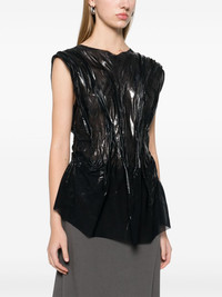 hand-painted tank top Highlights - Black - Hand-painted design - Coated finish - Crinkled finish - Draped detailing - Ruched detailing - Concealed rear zip fastening - Crew neck - Sleeveless - Asymmetric hem - Please note that we are unable to accept returns on latex pieces. Made in United States Composition Latex 100%, Fabric 100% SIZE & FIT Model measurements Height 5 ft 9 in(1.75 m) Bust/Chest 31.88 in(81 cm) Hips 34.64 in(88 cm) Waist 24.01 in(61 cm) FittingInformation Designed for a slim fit that sits just away from the body offering a close yet comfortable fit Made from a midweight stretch fabric, this piece offers elasticity and flexibility when worn