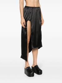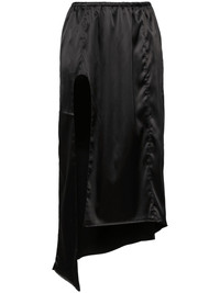 asymmetric satin slip skirt Highlights - Anthracite grey - Satin finish - Elasticated waistband - Pencil silhouette - Side slit - Asymmetric hem - Below-knee length Imported Composition Satin 100% SIZE & FIT Model measurements Height 5 ft 11 in(1.8 m) Bust/Chest 33.07 in(84 cm) Hips 37.4 in(95 cm) Waist 25.19 in(64 cm) FittingInformation Designed with an asymmetric hem, this skirt is intended to be worn just below the waist The elasticated waist allows for a comfortable fit Made from a lightweight non-stretch fabric This piece fits true to size – take your usual size