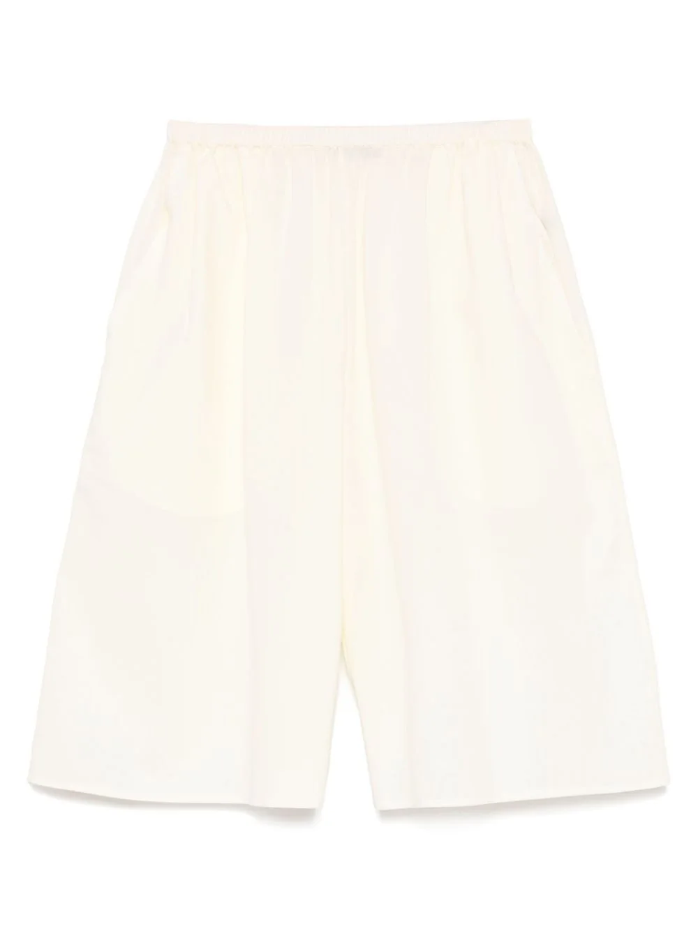 Praire bermuda shorts Highlights - Light beige - Elasticated waistband - Two diagonal pockets to the sides Made in United States Composition Cotton 100% SIZE & FIT Model measurements Height 5 ft 10 in(1.78 m) Bust/Chest 33.46 in(85 cm) Hips 36.22 in(92 cm) Waist 23.22 in(59 cm) FittingInformation Designed with a voluminous wide-leg fit The elasticated waist allows for a comfortable fit Made from a lightweight non-stretch fabric