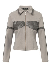 Racer zip-front jacket Highlights - Light grey - Zip fastening - Collared neckline - Long sleeves Made in United States Composition Polyester 67%, Rayon 15%, Cotton 14%, Elastane 4% Washing instructions Read Manufacturer Guidelines