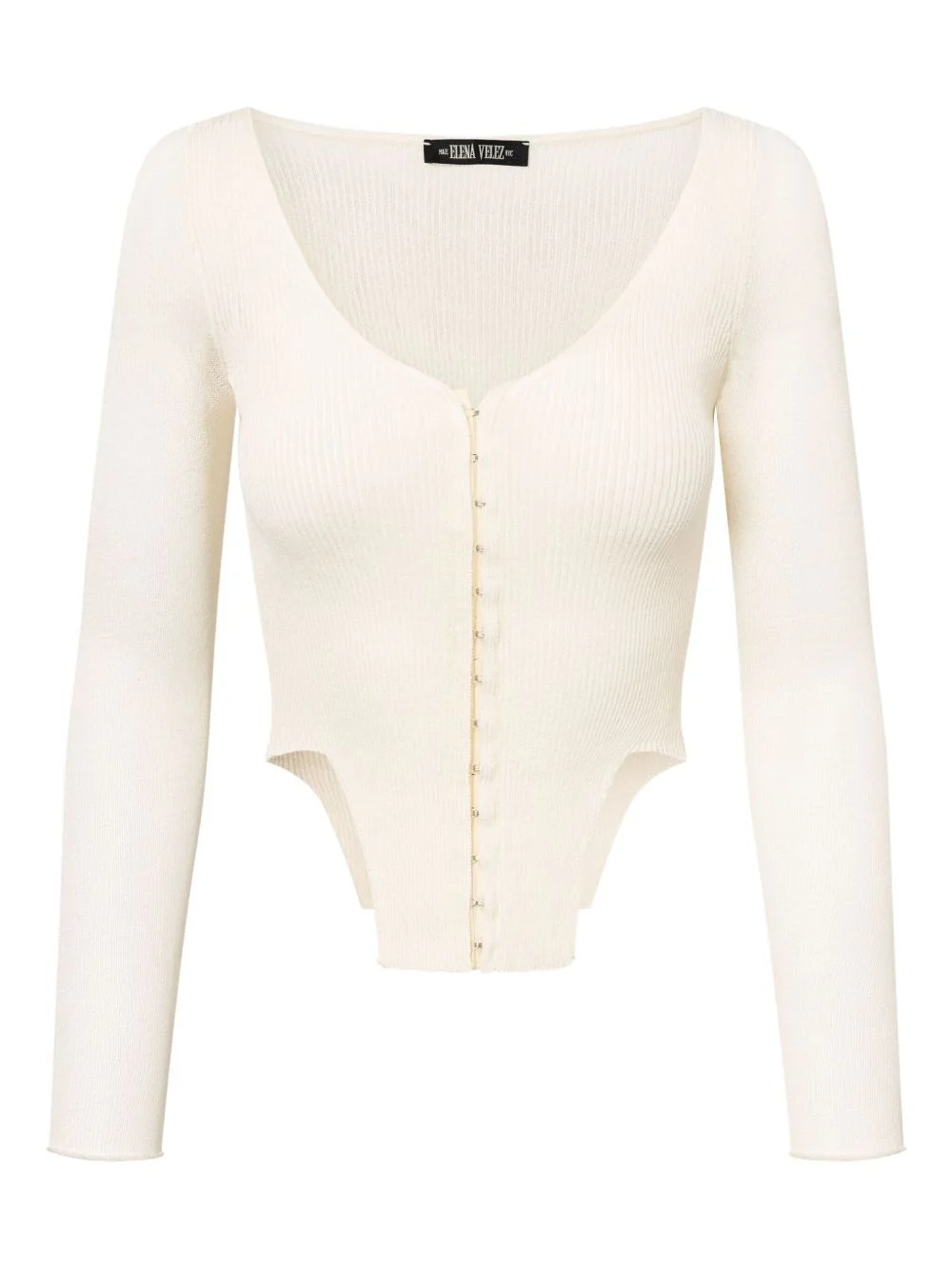 linen knit top Highlights - Ecru - Front hook and eye fastening - Round neck - Long sleeves Made in United States Composition Linen/Flax 100%