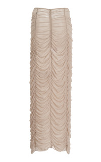 Ruched Silk-Chiffon Maxi Skirt neutral