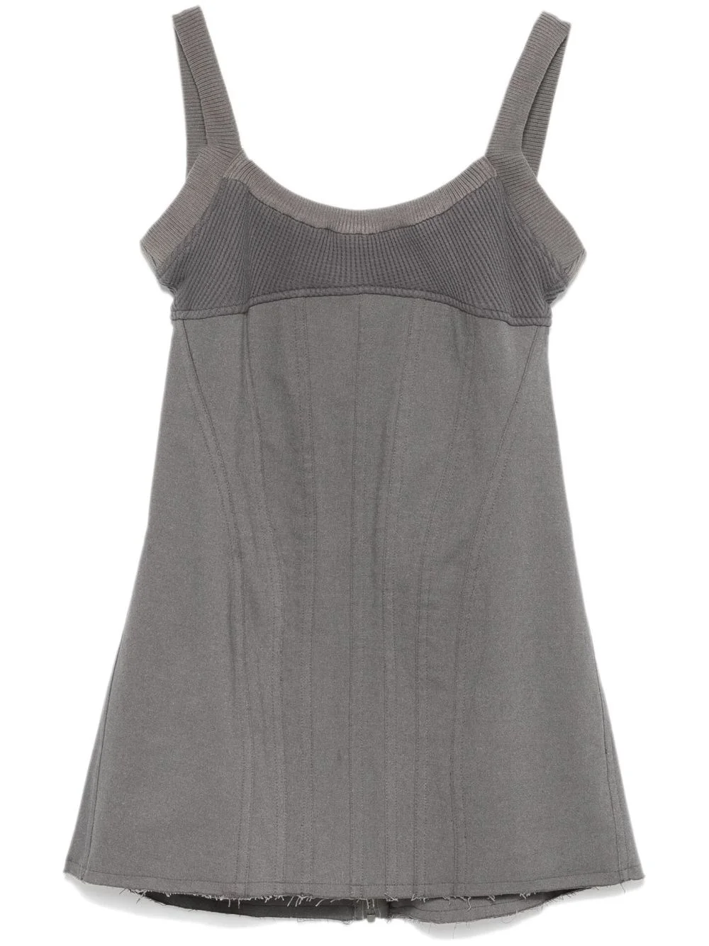 waffle-knit corset mini dress Highlights - Charcoal grey - Cotton blend - Twill weave - Waffle knit panel - Corset style - Ribbed trim - Rear zip fastening - U-neck - Thin shoulder straps - Seam detailing - A-line skirt - Raw-cut hem - Thigh-length Made in United States Composition Cotton 97%, Spandex/Elastane 3% SIZE & FIT Model measurements Height 5 ft 9 in(1.75 m) Bust/Chest 31.88 in(81 cm) Hips 34.64 in(88 cm) Waist 24.01 in(61 cm) FittingInformation Designed for a slim fit that sits just away from the body offering a close yet comfortable fit Made from a midweight stretch fabric, this piece offers elasticity and flexibility when worn