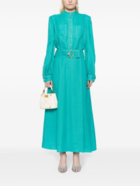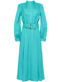 A-line belted maxi dress Highlights - Aqua blue - High neck - Front button fastening - Long sleeves - Buttoned cuffs - Two chest patch pockets - Belted waist - Pleated skirt - Ankle-length - Straight hem Made in Italy Composition Outer: Viscose 61%, Polyester 39% SIZE & FIT Model measurements Height 5 ft 9 in(1.76 m) Bust/Chest 31.1 in(79 cm) Hips 35.03 in(89 cm) Waist 24.4 in(62 cm) FittingInformation Designed for a close fit at the chest and waist with a loose fit at the hip The belt offers adjustability for fitted preferences Made from a midweight non-stretch fabric This piece fits true to size – take your usual size