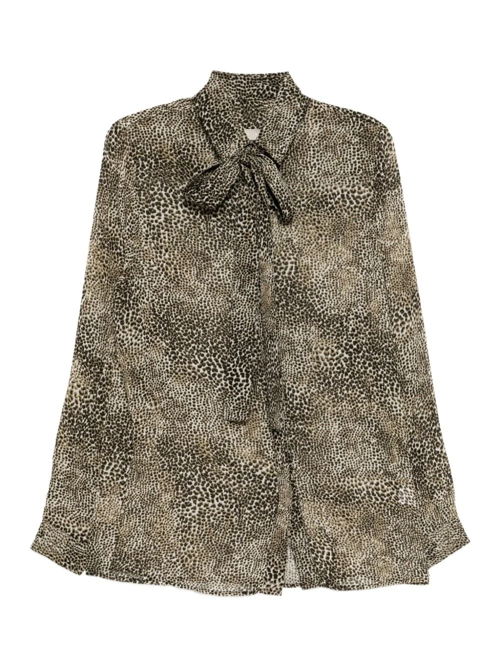 animalier-print shirt Highlights - Light brown - Concealed front button fastening - Detachable neck strap - Long sleeves - Buttoned cuffs Imported Composition Viscose 100% Washing instructions Dry Clean Only