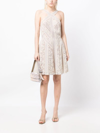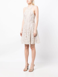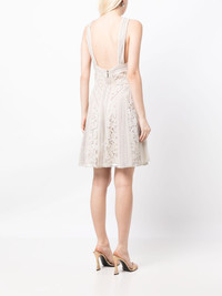 bead-embellished silk dress Highlights - Off-white - Silk - Panelled design - Bead embellishment - Crossover neck - Rear zip fastening - Sleeveless - A-line skirt - Straight hem - Above-knee length Imported Composition Body: Polyamide 65%, Silk 35% Lining: Silk 100% SIZE & FIT Model measurements Height 5 ft 9 in(1.76 m) Bust/Chest 31.1 in(79 cm) Hips 35.03 in(89 cm) Waist 24.4 in(62 cm) FittingInformation Designed for a close fit at the chest and waist with a loose fit at the hip Made from a midweight non-stretch fabric This piece fits true to size – take your usual size Washing instructions Dry Clean Only