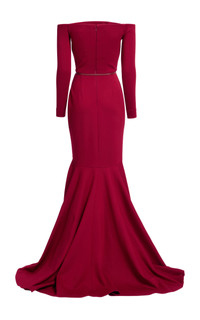 PRODUCT DETAILS - Long sleeve, off-the-shoulder, trumpet skirt, maxi hem - Concealed zip fastening - Composition: Jersey - Color: Luscious Red - Dry clean only - Pre-Fall '25