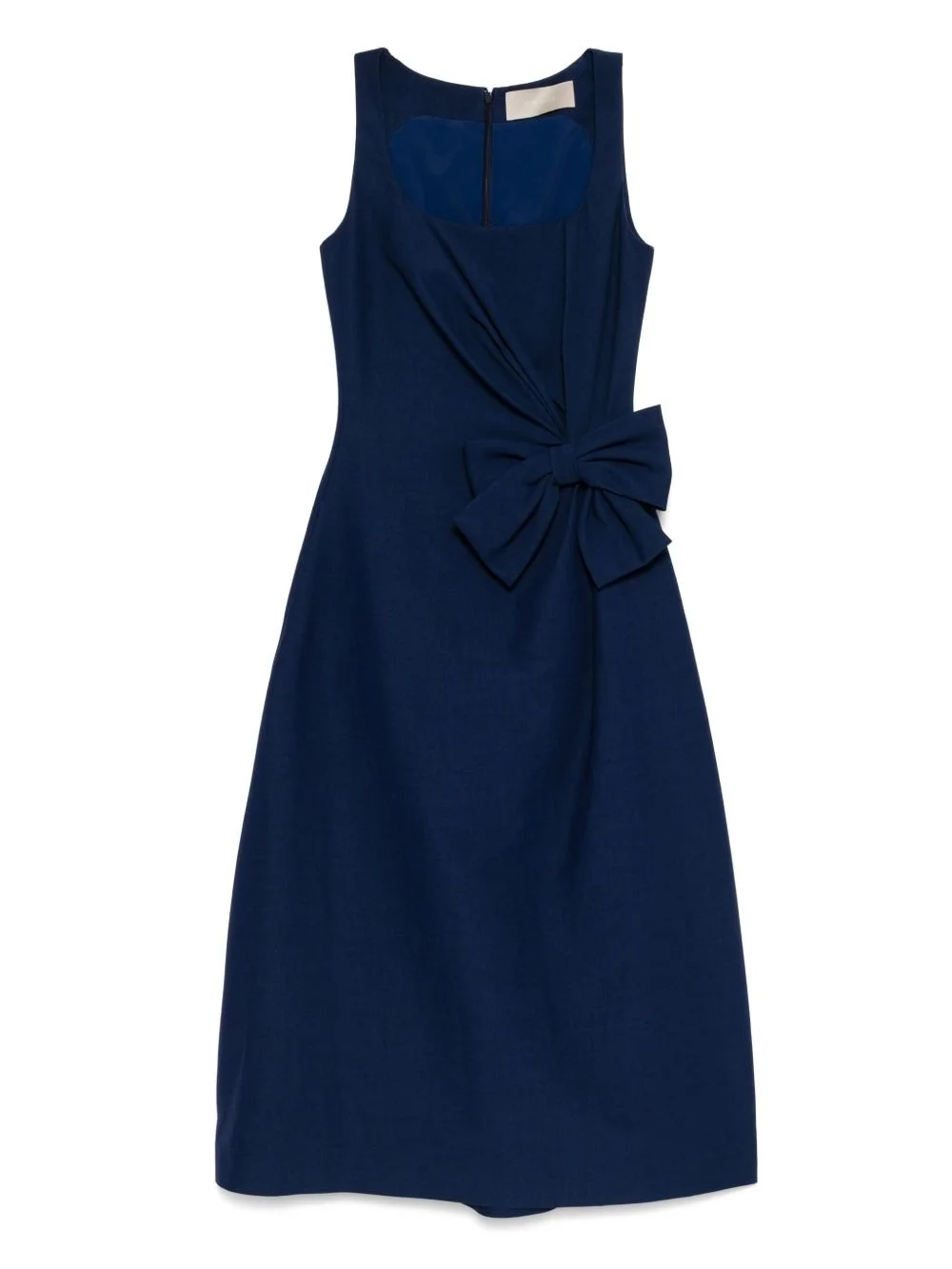 bow-detail midi dress Highlights - Navy blue - Concealed rear hook and zip fastening - Two side slit pockets - Square neck Made in Italy Composition Cotton 61%, Viscose 39% SIZE & FIT Model measurements Height 5 ft 10 in(1.78 m) Bust/Chest 29.92 in(76 cm) Hips 34.64 in(88 cm) Waist 24.8 in(63 cm) FittingInformation Designed for a close fit at the chest and waist with a loose fit at the hip The dart stitching adds structure and a closer fit in the torso of this piece Made from a heavyweight non-stretch fabric Washing instructions Read Manufacturer Guidelines