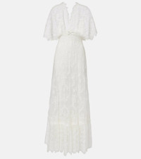 Elie Saab proves that the right dress can turn any occasion into a cherished memory. Falling to an elegant floor-length, this cotton-blend gown features a lace overlay with intricate embroidered detailing, and a flattering V-neckline. Product Details - Material: 58% cotton, 25% polyamide, 17% silk - Care instructions: dry clean - Made in Lebanon - Designer color name: White - Item color: white - Lining: 100% silk - Item number: P01045468 Size & Fit - True to size - Low back - Cinched waist - Non-stretchy fabric - The model seen in the picture is 178cm-5'10" and wearing a size FR 36