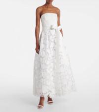 Elie Saab’s signature designs prove that the right ensemble can make a special occasion all the more memorable. This gown features a floral embroidered tulle and a detachable, self-tied drawstring belt. Product Details - Material: 64% polyester, 22% silk, 14% polyamide - Care instructions: dry clean - Made in Lebanon - Designer color name: Powder White - Item color: white - Lining: 100% silk - Detachable belt - Item number: P01045467 Size & Fit - True to size - Strapless - Internal boned corset for support - Cinched waist - Non-stretchy fabric - The model seen in the picture is 178cm-5'10" and wearing a size FR 36