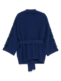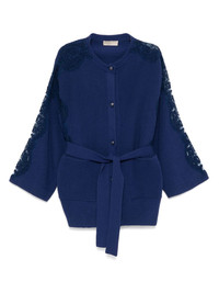button-up cardigan Highlights - Empire blue - Front button fastening - Two front patch pockets - Detachable adjustable waist strap - Semi-sheer construction Made in Italy Composition Organic Cotton 100% Washing instructions Hand Wash