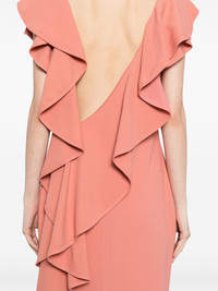 Cady dress Highlights - Powder pink - Rear zip fastening - V-back - Ruffle detailing Imported Composition Outer: Viscose 40%, Acetate 28%, Elastane 2% Viscose 30% SIZE & FIT Model measurements Height 5 ft 9 in(1.76 m) Bust/Chest 31.1 in(79 cm) Hips 35.03 in(89 cm) Waist 24.4 in(62 cm) FittingInformation Designed for a slim fit that sits just away from the body offering a close yet comfortable fit Particularly long in length; consider your own measurements Made from a midweight stretch fabric, this piece offers elasticity and flexibility when worn