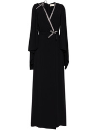 Cady dress Highlights - Black - Crepe texture - Concealed rear hook and zip fastening - Plunging v-neck - Long draped sleeves - Crystal embellishment - Bow detailing - Fitted waistline - Flared skirt - Full lining Made in Italy Composition Outer: Viscose 53%, Acetate 44%, Elastane 3% Lining: Acetate 74%, Silk 26% SIZE & FIT Model measurements Height 5 ft 10 in(1.77 m) Bust/Chest 31.49 in(80 cm) Hips 35.43 in(90 cm) Waist 25.19 in(64 cm) FittingInformation Designed for a close fit at the chest and waist with a loose fit at the hip Made from a midweight stretch fabric, this piece offers elasticity and flexibility when worn