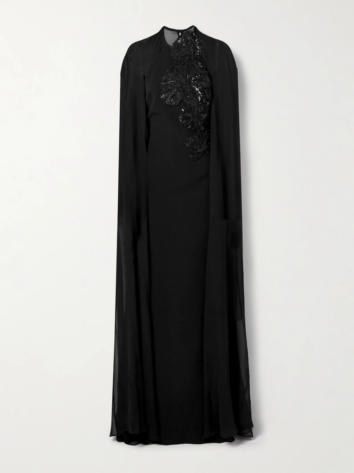 Cape-effect Embellished Silk-crepe And Silk-chiffon Gown