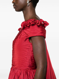 cape-effect taffeta gown Highlights - Rose red - Taffeta - Ruffled detailing - Pleat detailing - Cape design - Off-shoulder - Rear zip fastening - Cap sleeves - Fitted waistline - Full skirt - Floor-length Imported Composition Outer: Polyester 64%, Silk 25%, Polyamide 11% Lining: Silk 100% SIZE & FIT Model measurements Height 5 ft 10 in(1.77 m) Bust/Chest 32.28 in(82 cm) Hips 35.03 in(89 cm) Waist 25.19 in(64 cm) Measurement HIPS 44.09 in(112 cm) LENGTH 58.26 in(148 cm) WAIST 27.55 in(70 cm) FittingInformation Designed for a close fit at the chest and waist with a loose fit at the hip The internal bodice offers support and shape Made from a midweight non-stretch fabric This piece fits true to size – take your usual size Washing instructions Dry Clean Only