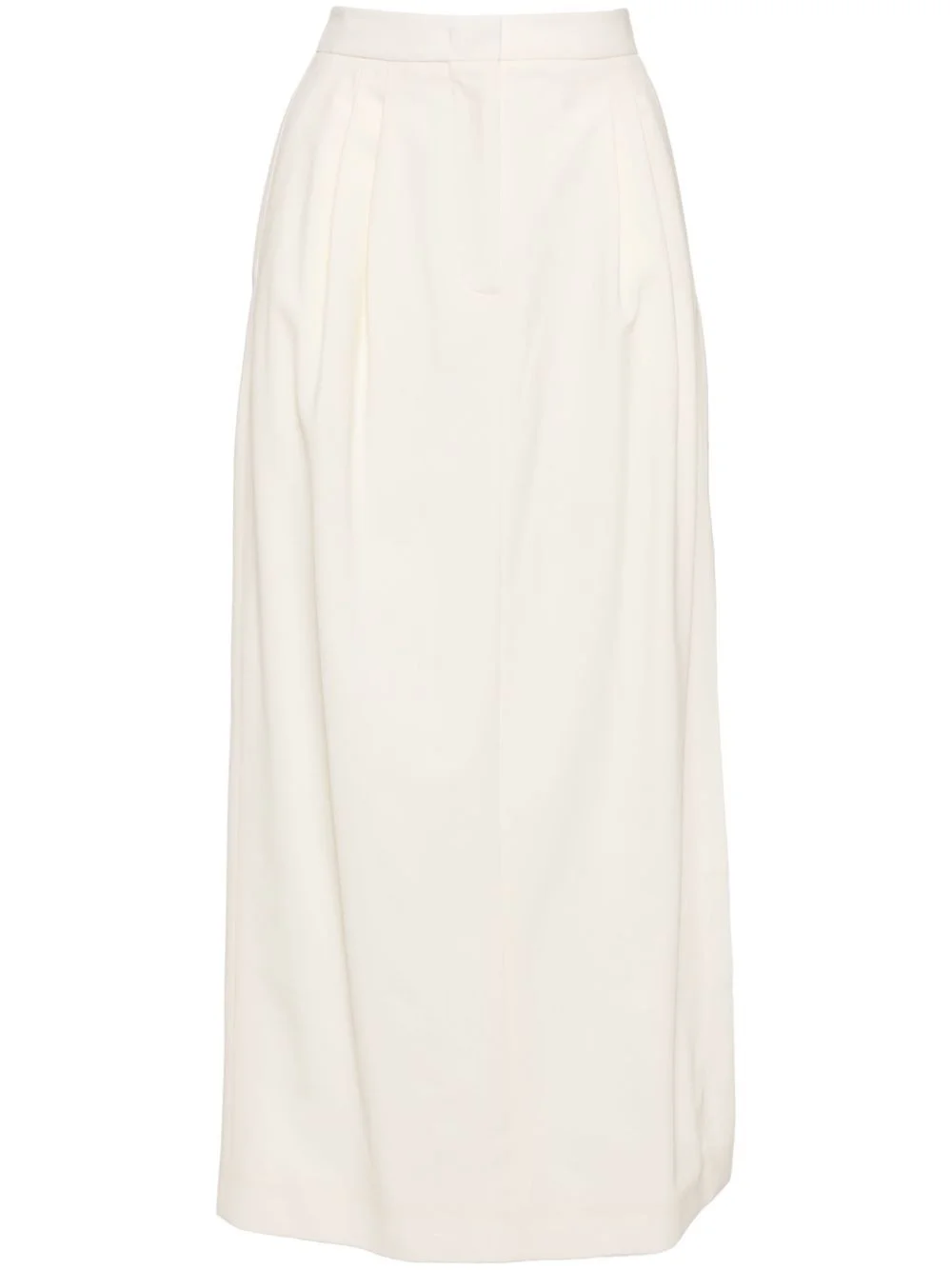 crepe midi skirt Highlights - Powder white - Virgin wool blend - Concealed front button, hook and zip fastening - Pressed crease - Two side inset pockets - Side slit - Full lining Made in Italy Composition Outer: Virgin Wool 95%, Elastane 5% Lining: Acetate 74%, Elastane 26%