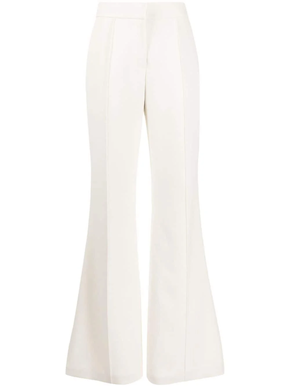 pressed-crease cady flared trousers Highlights - Milk white - Stretch-design - Cady texture - Pressed crease - High-waisted - Flared - Concealed front fastening - Two side inset pockets - Straight hem Imported Composition Polyester 95%, Spandex/Elastane 5% Washing instructions Hand Wash