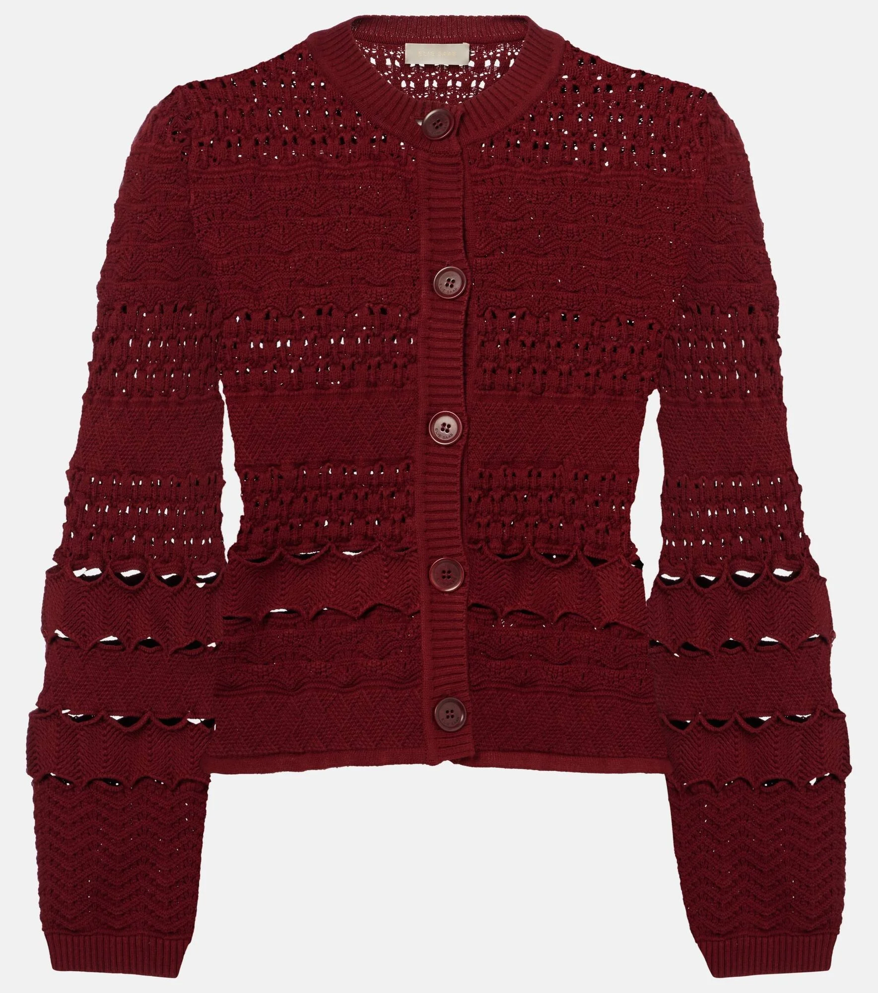 Elie Saab’s impactful designs are proof that the right outfit can make a special occasion all the more memorable. This cardigan features intricately crocheted details that let your skin peek through. Product Details - Material: 70% viscose, 30% polyamide - Care instructions: dry clean - Made in Italy - Designer color name: Fireball Lily - Item color: red - Closure: buttoned front - Item number: P01026799 Size & Fit - True to size - Straight fit - Slightly stretchy fabric - Slightly cropped - The model seen in the picture is 178cm-5'10" and wearing a size XS