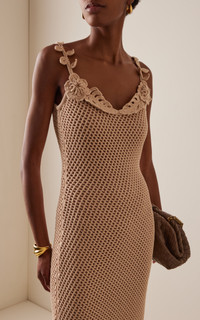 Crochet-Knit Cotton-Blend Maxi Dress khaki