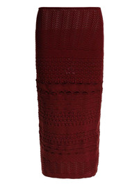 crochet-knit skirt Highlights - Burgundy red - Crochet knit - Straight hem Made in Italy Composition Viscose 70%, Polyamide 30% Washing instructions Read Manufacturer Guidelines