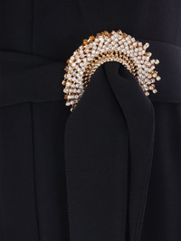 draped-back jewel-buckle jumpsuit Highlights - Black - Halterneck design - Open back - Jewel buckle belt - Draped back detail Imported Composition Viscose 40%, Acetate 38%, Silk 20%, Spandex/Elastane 2% Washing instructions Read Manufacturer Guidelines