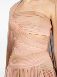 printed chiffon gown Highlights - Rose pink - Concealed zip fastening - Strapless - Cut-out detailing - Draped detailing Imported Composition Silk 100% SIZE & FIT Measurement CHEST 34.64 in(88 cm) HIPS 45.66 in(116 cm) LENGTH 57.48 in(146 cm) WAIST 30.7 in(78 cm)