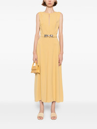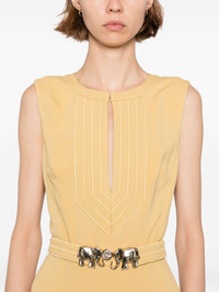 elephant-buckle midi dress Highlights - Sand - Keyhole neck - Concealed rear hook and zip fastening - Sleeveless - Detachable waist belt Made in Italy Composition Viscose 97%, Elastane 3% SIZE & FIT Model measurements Height 5 ft 10 in(1.78 m) Bust/Chest 29.92 in(76 cm) Hips 34.64 in(88 cm) Waist 24.8 in(63 cm) FittingInformation Designed for a close fit at the chest with a loose fit over the waist and hips Made from a midweight non-stretch fabric Washing instructions Dry Clean Only