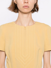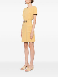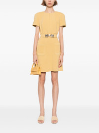 elephant-buckle short dress Highlights - Sand - Concealed rear hook and zip fastening - Concealed front zip fastening - Short sleeves - Two front patch pockets Made in Italy Composition Viscose 97%, Elastane 3% SIZE & FIT Model measurements Height 5 ft 10 in(1.78 m) Bust/Chest 29.92 in(76 cm) Hips 34.64 in(88 cm) Waist 24.8 in(63 cm) FittingInformation Designed for a close fit at the chest with a loose fit over the waist and hips Made from a midweight non-stretch fabric Washing instructions Dry Clean Only