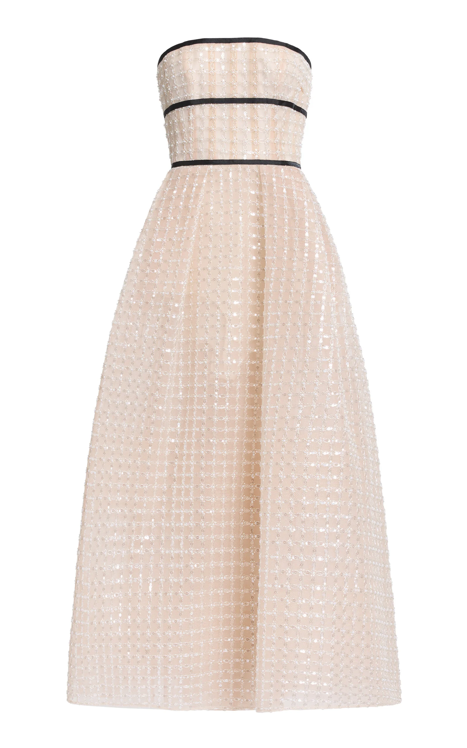 Effervescence, opulent textures, and a fierce feminine energy take hold of the Lebanese talent this season with bold reinterpretations of his fairytale gowns. It's a wildly glamorous lesson in precise, couture-level craftsmanship. PRODUCT DETAILS - Resort '26 - Regular fit, strapless, A-line midi hem - Concealed zip fastening at back - Fully lined - Composition: 100%PL - Color: Whisper white - Dry clean - Resort '26
