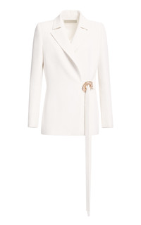Crystal-Embellished Cady Wrap Blazer white