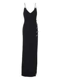 bow-embellished gown Highlights - Black - Concealed rear zip fastening - Spaghetti straps - Crystal embellishment - Side slit Imported Composition Viscose 53%, Acetate 44%, Elastane 3%