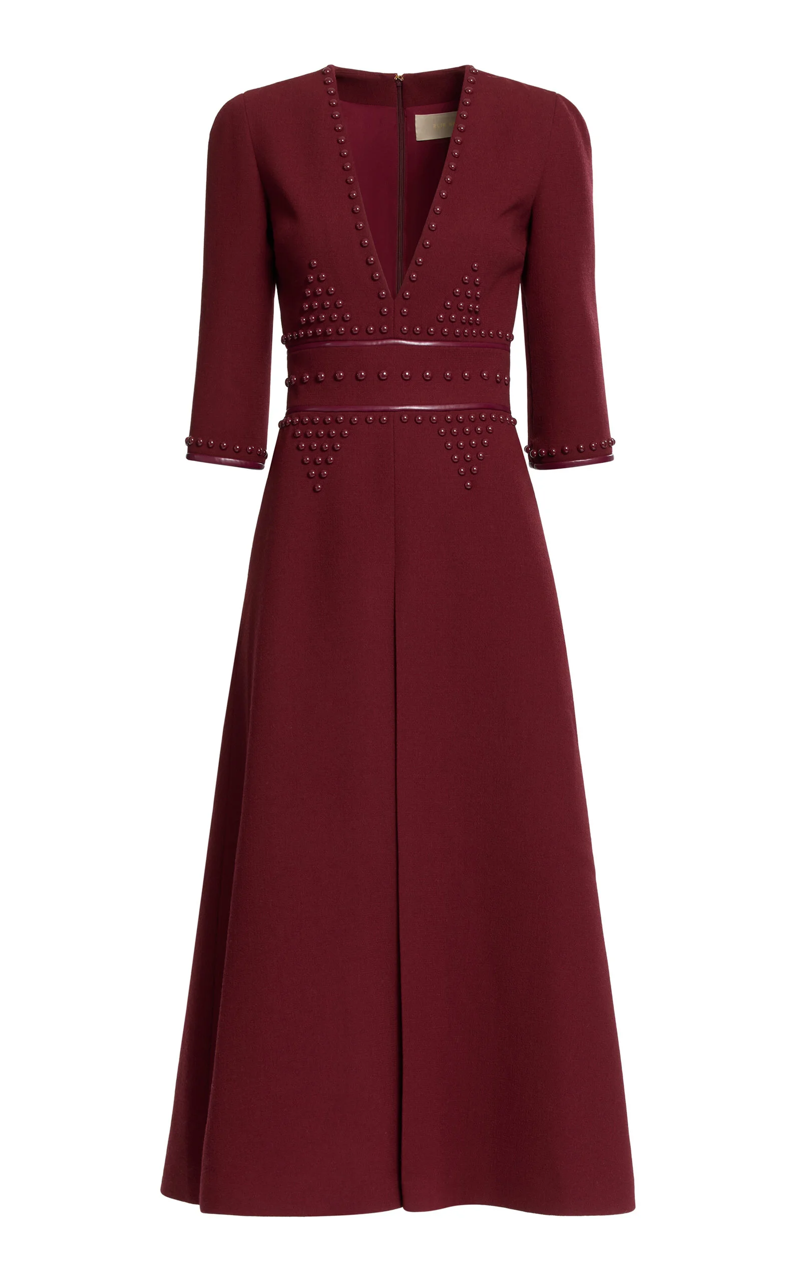 Embellished Wool & Leather Midi Dress burgundy