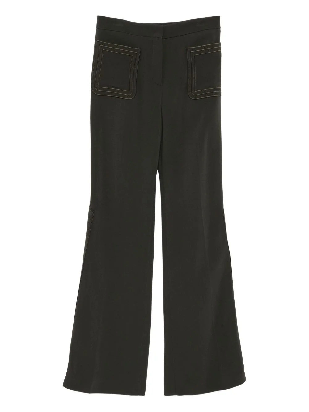 embroidered cady pants Highlights - Olive green - Concealed front button, hook and zip fastening - Two front patch pockets - Rear jetted pocket Made in Italy Composition Viscose 97%, Elastane 3% SIZE & FIT Model measurements Height 5 ft 9 in(1.76 m) Bust/Chest 31.1 in(79 cm) Hips 35.03 in(89 cm) Waist 24.4 in(62 cm) FittingInformation Designed with a flared hem, these trousers allow for a close fit at the waist with a slim fit over the leg and widening towards the hem Particularly long in length; consider your own measurements Made from a midweight stretch fabric, this piece offers elasticity and flexibility when worn Washing instructions Dry Clean Only