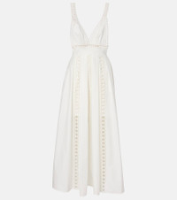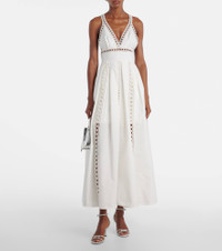 Elie Saab’s impactful designs are proof that the right outfit can make a special occasion all the more memorable. Made with a cotton blend, the midi dress features intricate embroidery and is finished with an invisible zipper. Product Details - Material: 86% cotton, 14% polyester - Care instructions: dry clean - Made in Lebanon - Designer color name: Powder White - Item color: white - Closure: invisible zipper - Item number: P01061164 Size & Fit - True to size - Low back - Cinched waist - Non-stretchy fabric - The model seen in the picture is 178cm-5'10" and wearing a size FR 36