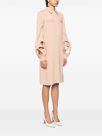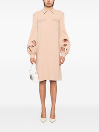 embroidered cut-out dress Highlights - Nude neutrals - Embroidered design - Cut-out detailing - Pintuck detailing - Button fastening - Long sleeves - Classic collar - Buttoned cuffs - Straight hem Made in Italy Composition Outer: Viscose 64%, Acetate 33%, Elastane 3% Lining: Acetate 74%, Silk 26% SIZE & FIT Model measurements Height 5 ft 10 in(1.77 m) Bust/Chest 31.49 in(80 cm) Hips 35.43 in(90 cm) Waist 25.19 in(64 cm) FittingInformation Designed to be unstructured, offering a loose fit throughout Made from a midweight stretch fabric, this piece offers elasticity and flexibility when worn