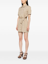 embroidered gabardine jumpsuit Highlights - Beige - Detachable belt - Concealed rear hook and zip fastening - Concealed front zip fastening - Two side slash pockets - Rear welt pocket Made in Italy Composition Organic Cotton 100% SIZE & FIT Model measurements Height 5 ft 10 in(1.77 m) Bust/Chest 28.74 in(73 cm) Hips 35.82 in(91 cm) Waist 24.4 in(62 cm) FittingInformation Designed for a slim fit that sits just away from the body offering a close yet comfortable fit The detachable straps offer an alternate way to wear this piece Made from a midweight non-stretch fabric Washing instructions Hand Wash