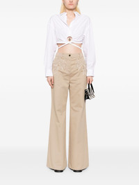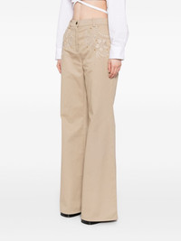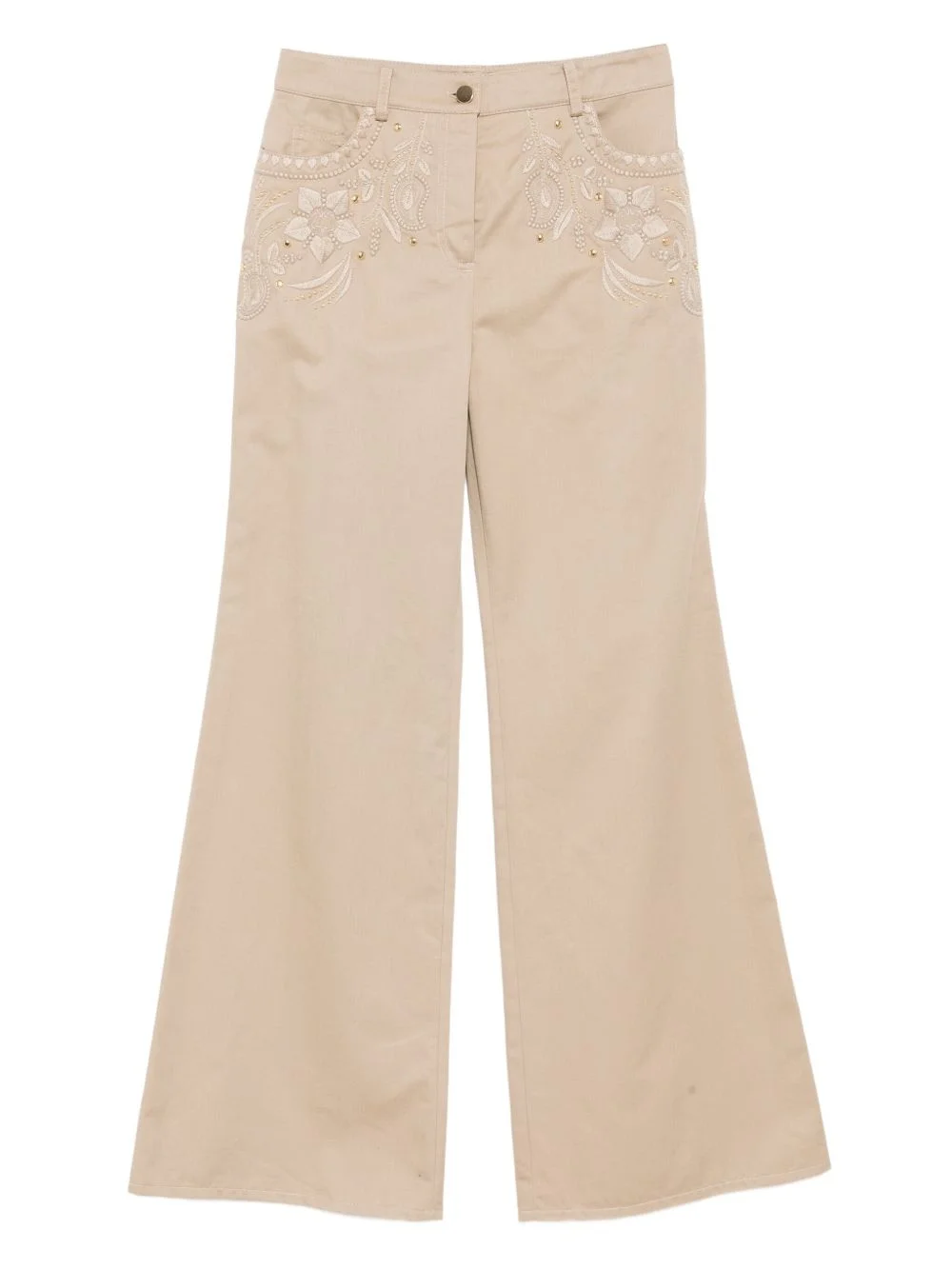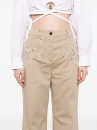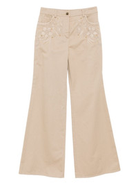embroidered gabardine pants Highlights - Light grey - Front button and zip fastening - Classic five pockets - Belt loops - Stud embellishment Made in Italy Composition Organic Cotton 100% SIZE & FIT Model measurements Height 5 ft 9 in(1.76 m) Bust/Chest 31.1 in(79 cm) Hips 35.03 in(89 cm) Waist 24.4 in(62 cm) FittingInformation Designed with a flared hem, these trousers allow for a close fit at the waist with a slim fit over the leg and widening towards the hem Made from a midweight non-stretch fabric Washing instructions Hand Wash
