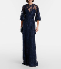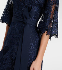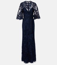 Elie Saab’s impactful designs are proof that the right outfit can make a special occasion all the more memorable. Crafted from a fine lace and tulle blend, this gown is decorated with tonal embroidery and cinches at the waist with a detachable band. Product Details - Material: 41% silk, 39% ramie, 15% polyester, 5% nylon - Care instructions: dry clean - Made in Lebanon - Color: blue - Designer color name: Sunset Coral - Separate lining slip: 100% silk - Detachable belt - Closure: concealed zipped back - Item number: P01127490 Size & Fit - True to size - Cinched waist - Non-stretchy fabric - The model seen in the picture is 178cm-5'10" and wearing a size FR 36