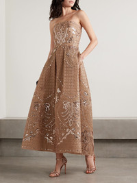 Elie Saab taught himself to sew at the age of 10, so decades of expertise go into every design. This striking midi dress is made from tulle that's meticulously embroidered to resemble lace and decorated with light-catching sequins for added glamour. Internal boning and gumming support the strapless bodice, while pleats enhance the volume of the skirt. Size & Fit - Fits true to size, take your normal size - Designed to be fitted at the bust and waist, loose at the hip - Internal bust support - Mid-weight, heavily embellished, non-stretchy fabric - Model is 177cm/ 5'10" and is wearing a FR 36 Details & Care - Antique-rose sequined tulle - Concealed hook and zip fastenings at back - 36% polyester, 27% polyamide, 19% silk, 16% rayon. 2% rayon; lining: 100% silk - Dry clean - Designer color: Desert Rose
