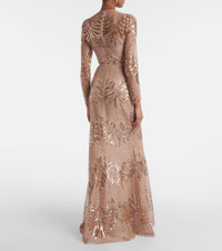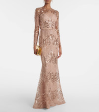 Elie Saab’s impactful designs are proof that the right outfit can make a special occasion all the more memorable. The shimmering gown is made from sequined tulle and features intricate floral embroidery all over. Product Details - Material: 55% polyester, 45% silk - Care instructions: dry clean - Made in Lebanon - Designer color name: Shadow Rose - Item color: beige - Lining: 100% silk - Cuff: zipped - Closure: concealed zipper, zipped back, hook fastening - Attached belt - Item number: P01061168 Size & Fit - True to size - Fitted - Non-stretchy fabric - The model seen in the picture is 178cm-5'10" and wearing a size FR 36