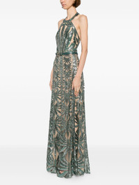 embroidered tulle halter dress Highlights - Green - Concealed rear hook and zip fastening - Sleeveless - Sequin embellishment Imported Composition Polyester 50%, Silk 26%, Ramie 24% SIZE & FIT Model measurements Height 5 ft 10 in(1.78 m) Bust/Chest 29.92 in(76 cm) Hips 34.64 in(88 cm) Waist 24.8 in(63 cm) FittingInformation Designed for a close fit at the chest with a loose fit over the waist and hips The belt offers adjustability for fitted preferences Made from a midweight non-stretch fabric Washing instructions Dry Clean Only