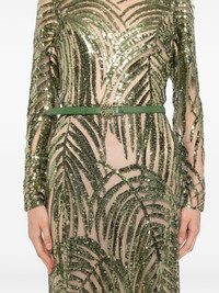 embroidered tulle long dress Highlights - Grass green - Concealed rear hook and zip fastening - Crew neck - Long sleeves - Detachable and adjustable waist belt Imported Composition Polyester 48%, Silk 37%, Ramie 15% SIZE & FIT Model measurements Height 5 ft 10 in(1.78 m) Bust/Chest 29.92 in(76 cm) Hips 34.64 in(88 cm) Waist 24.8 in(63 cm) FittingInformation Designed for a close fit at the chest with a loose fit over the waist and hips The belt offers adjustability for fitted preferences Made from a midweight non-stretch fabric Washing instructions Dry Clean Only