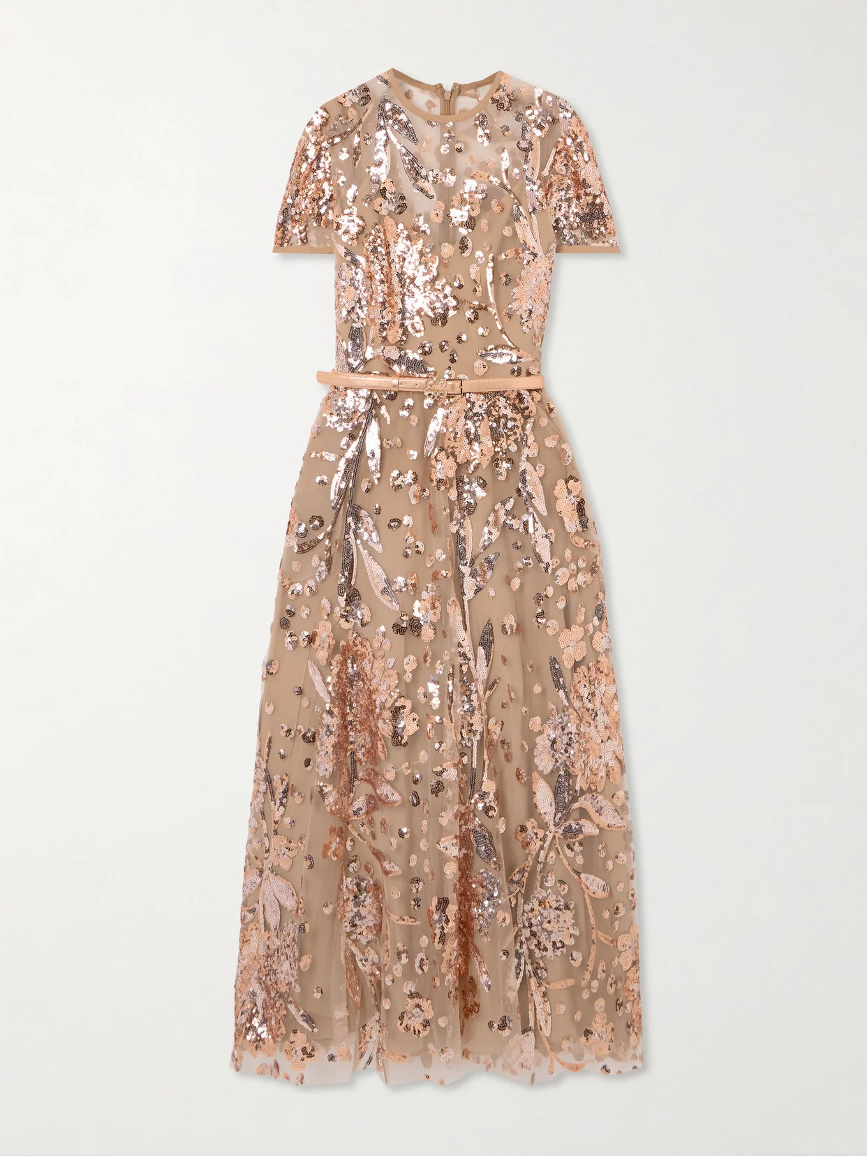 Belted Sequin-embellished Tulle Midi Dress