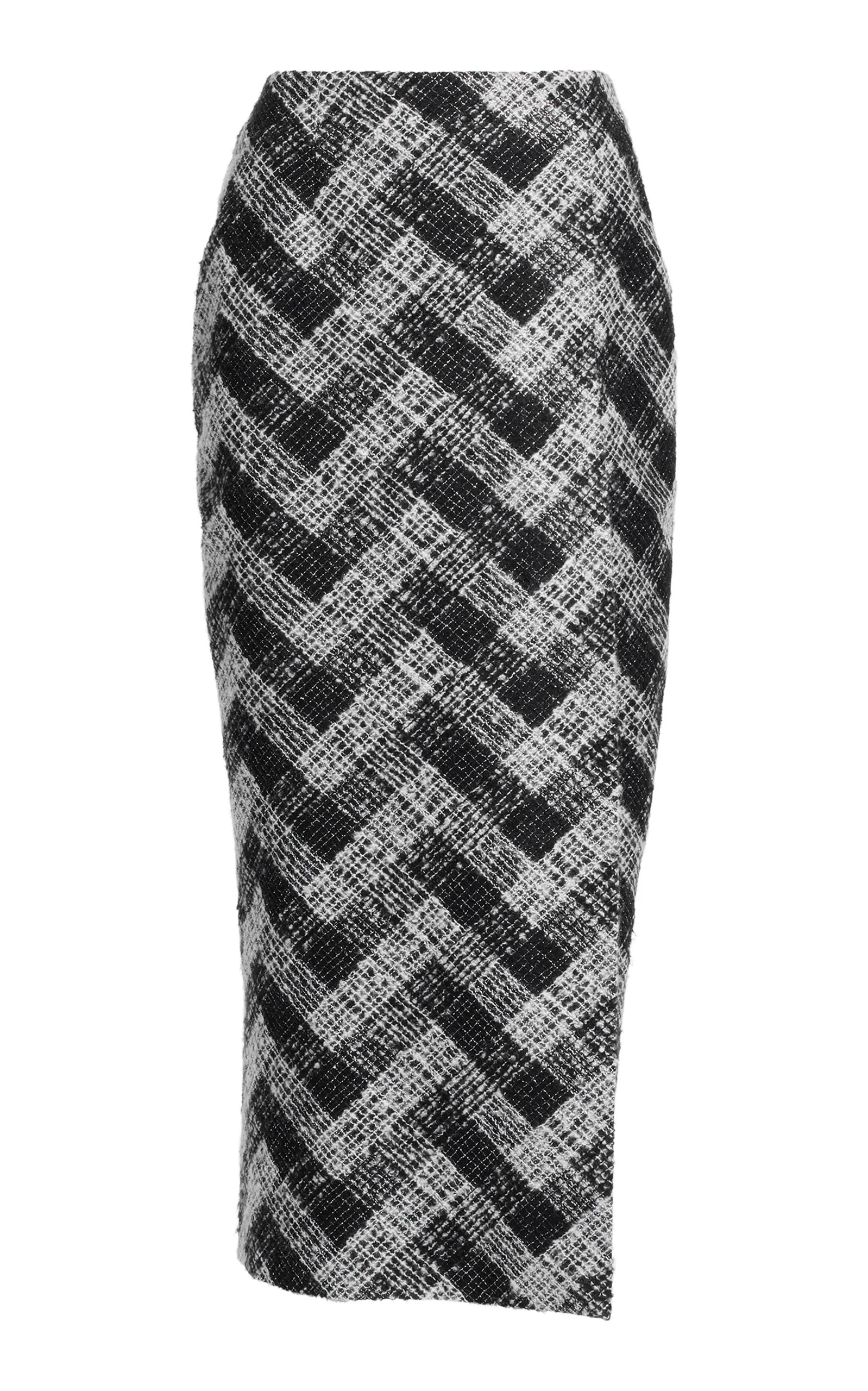 PRODUCT DETAILS - High-waisted, slit detail, pencil shape, midi hem - Concealed zip fastening - Composition: Embroidered Tulle - Color: Black And White - Dry clean only - Pre-Fall '25