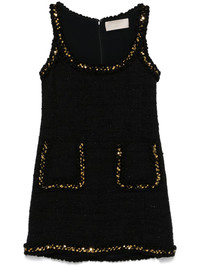 embroidered tweed mini dress Highlights - Black - Concealed rear hook and zip fastening - Two front patch pockets - Full lining - Sequin embellishment Imported Composition Outer: Polyester 51%, Cotton 39%, Wool 7%, Polyamide 3% Lining: Acetate 74%, Silk 26%