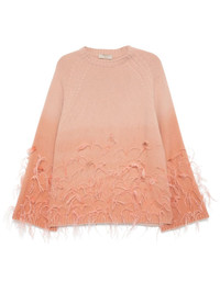 feather embellished knit sweater Highlights - Nude pink-burning love - Wool blend - Knitted construction - Crew neck - Gradient effect - Feather detailing - Ribbed cuffs and hem Made in Italy Composition Wool 85%, Cashmere 15%