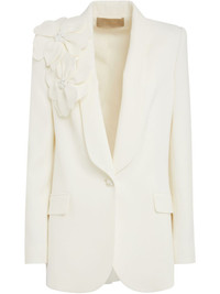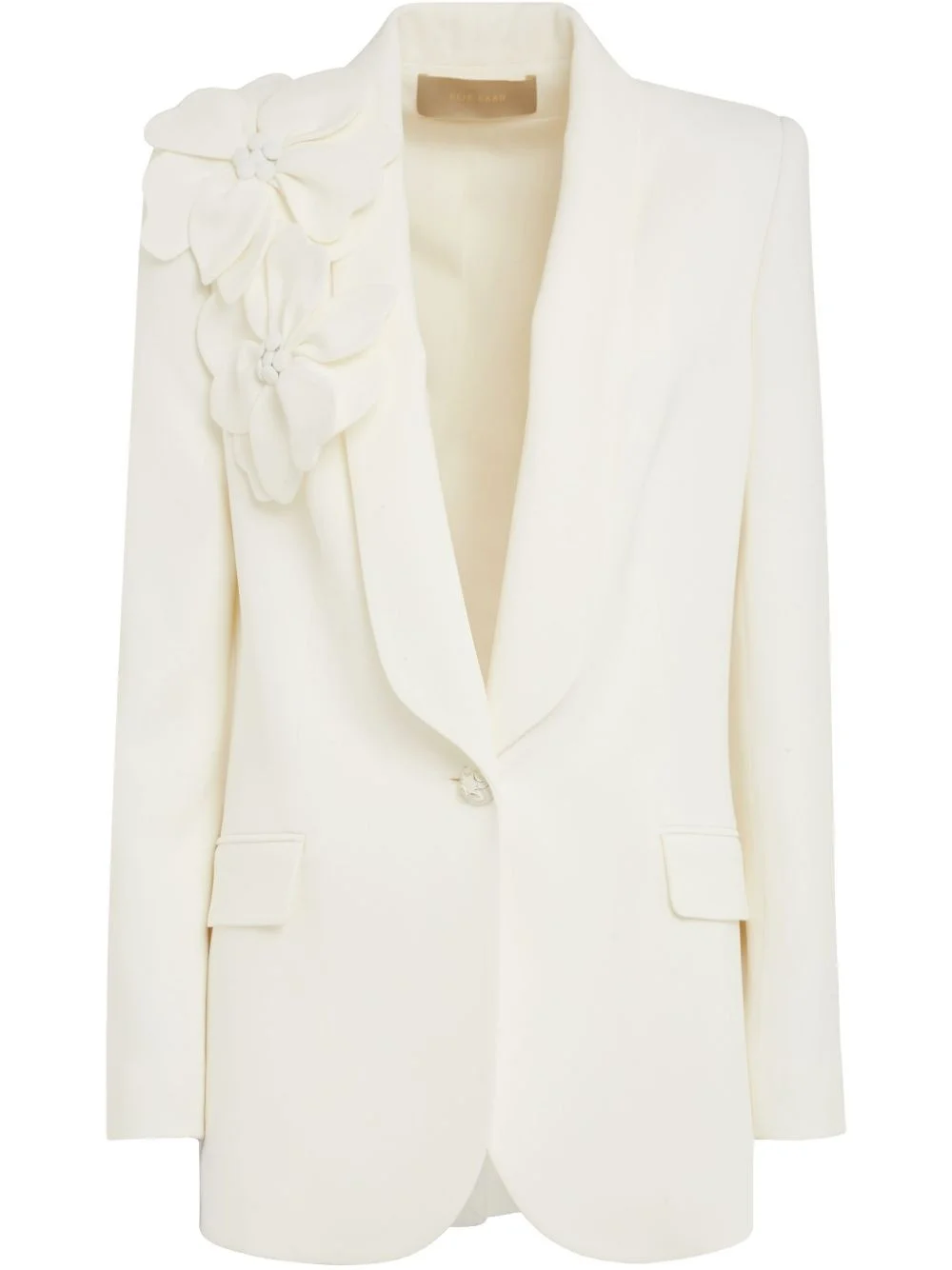 floral-applique blazer Highlights - White - Front button fastening - Two front flap pockets - English rear vents - Buttoned cuffs Imported Composition Fabric 100% SIZE & FIT Measurement CHEST 36.22 in(92 cm) SLEEVE LENGTH 24.4 in(62 cm) HIPS 40.94 in(104 cm) LENGTH 29.13 in(74 cm) WAIST 33.07 in(84 cm)